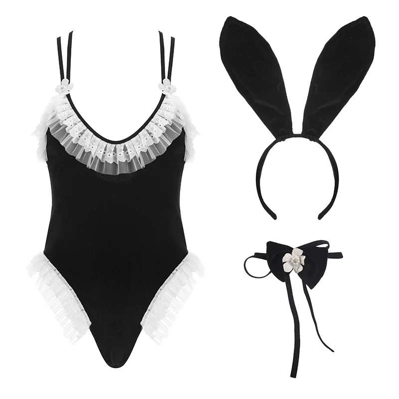 JENGS 2025 Women's Sexy Nude Erotic Miss Rabbit Lingerie Costume New Underwear Teddy with Lace and Embroidery Decoration